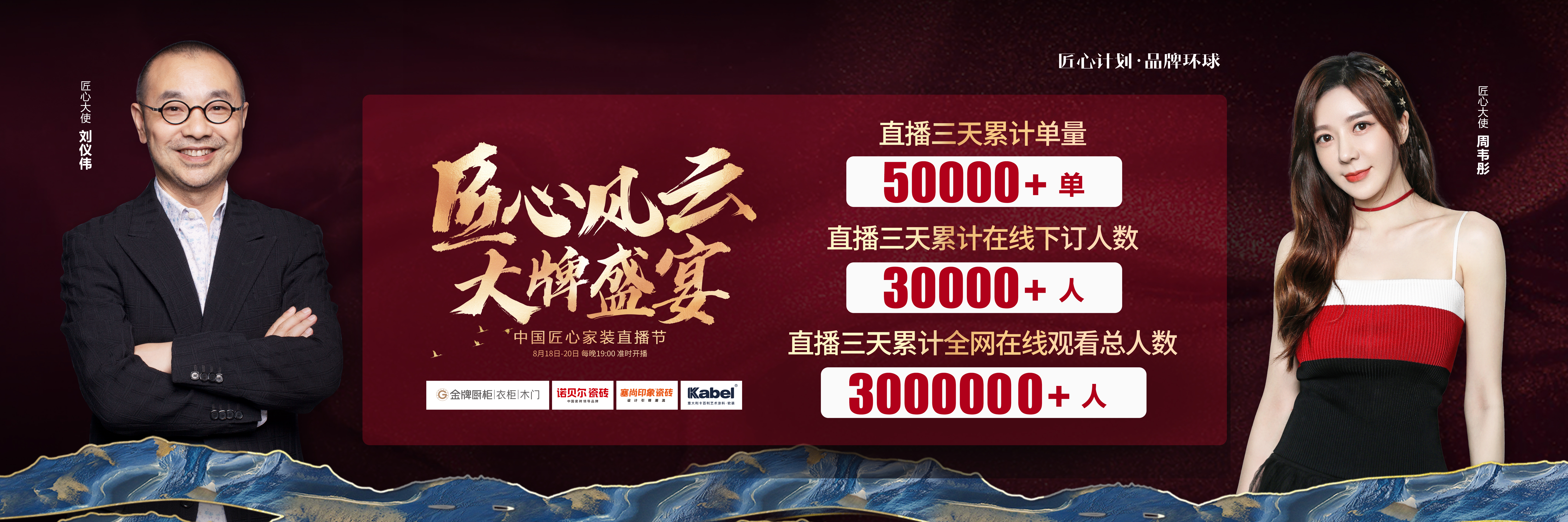 由304am永利集团厨柜、诺贝尔瓷砖、塞尚印象瓷砖、卡百利艺术涂料联合缔造,创赢科技系统支持全案营销执行的“匠心风云 大牌盛宴”中国匠心家装直播节于8月20日圆满落...